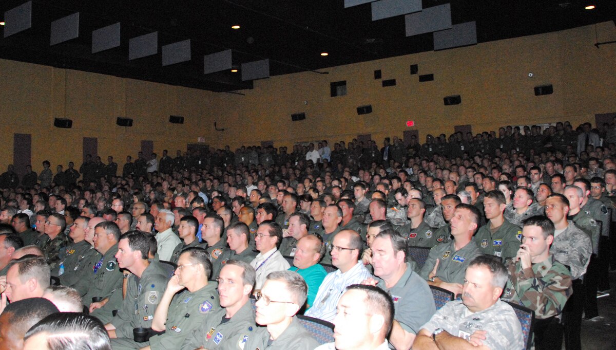 DAVIS-MONTHAN AIR FORCE BASE, Ariz. – Guardsmen and Reservists from across the country pack into the base theater here to kick off the 2008 Weapons and Tactics Conference (WEPTAC) Oct. 20. Approximately 1,600 registered conference attendees converged on Tucson, Ariz., to discuss the Air Reserve Component’s (ARC) look to the future force structure and new mission areas. The Air National Guard Air Force Reserve Test Center (AATC) and the 162nd Fighter Wing will host this annual event, Oct. 20 through 24 from D-M and the Arizona Air National Guard base at Tucson International Airport. (Air National Guard photo by Master Sgt. Dave Neve)